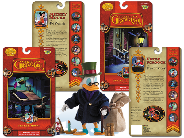Disney's holiday cartoon take on the classic Dicken's tale. Packaging and Disney Holiday logos were completely created from scratch for this line of figures and carried over to figurines, key chains and giant figure sets.